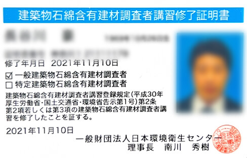当社には石綿分析技術評価事業の認定者が在籍しており、